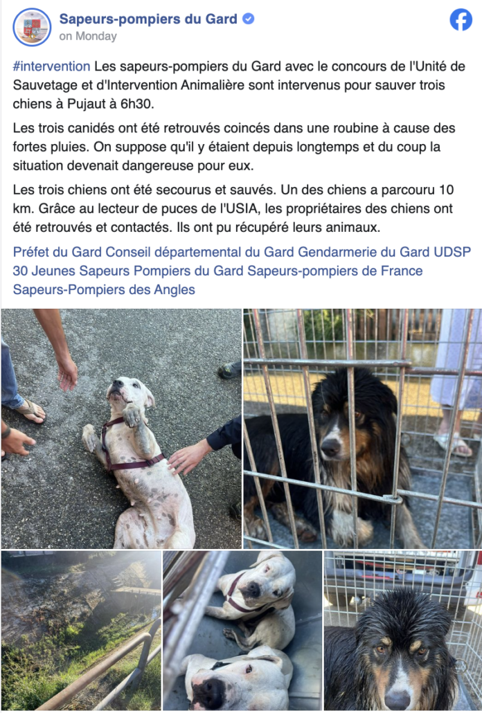La Fondation Assistance aux Animaux tient à saluer ce beau sauvetage des Sapeurs-Pompiers du Gard ! Grâce à leur intervention, les animaux, sains et saufs, ont pu retrouver leur maitre.
